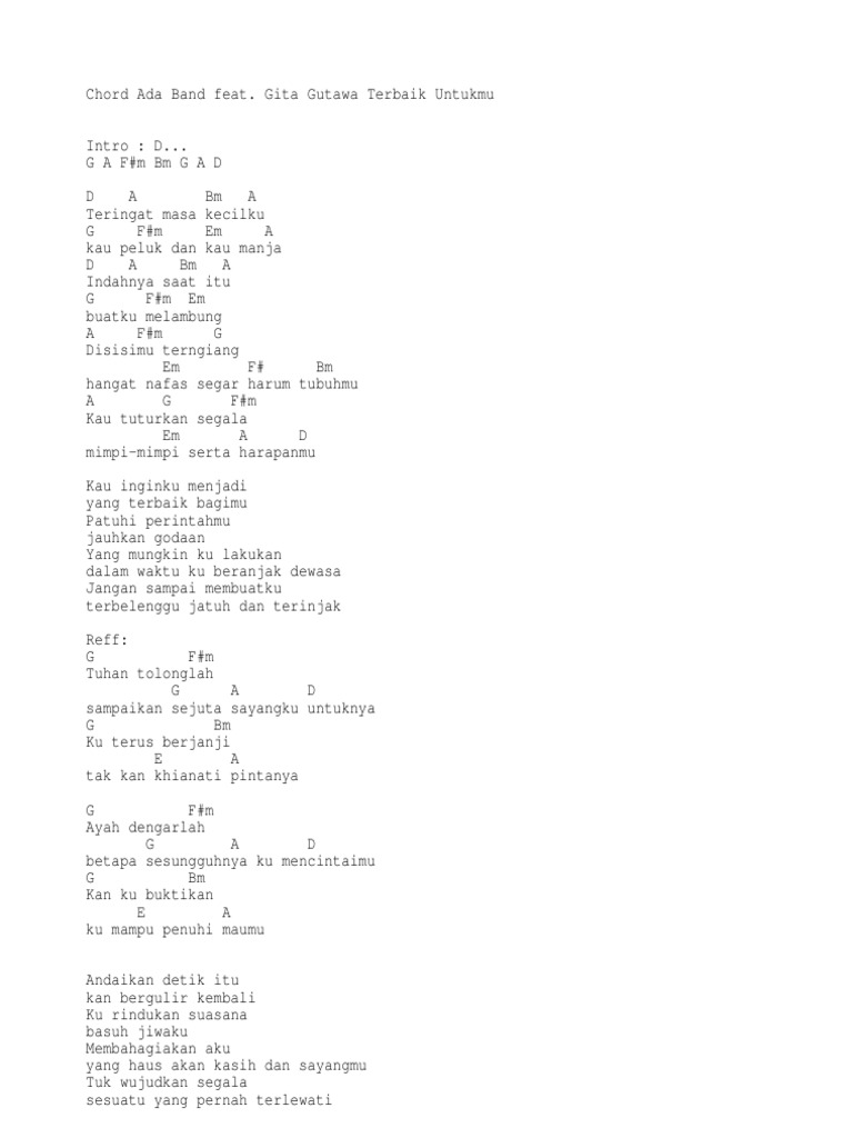Kunci Gitar Chord Dan Lirik Lagu Ada Band Feat Gita Gutawa Terbaik Untukmu Main Dari Kunci D Bangka Pos