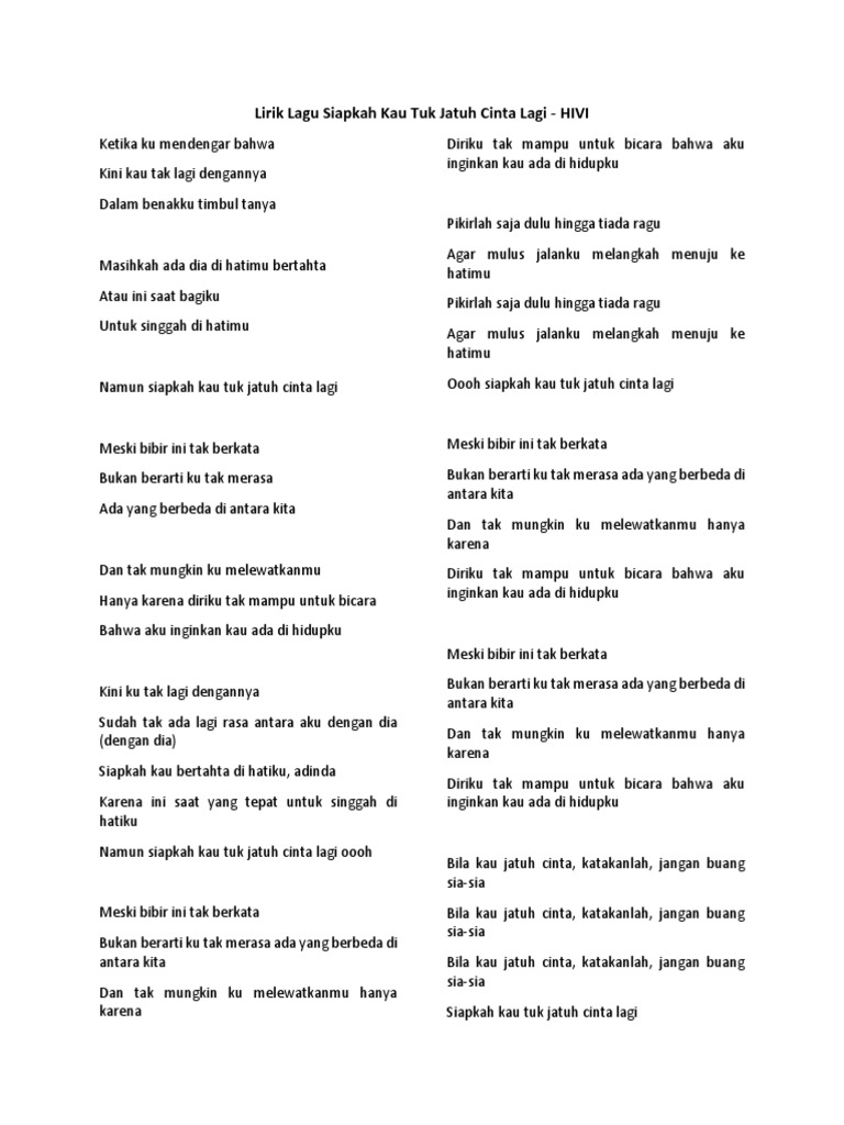 Chord Gitar Lirik Siapkah Kau Tuk Jatuh Cinta Lagi Hivi Tribun Manado
