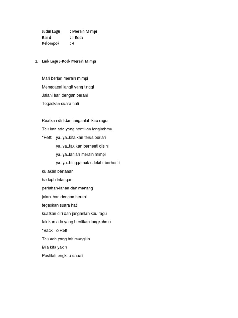 Chord Dan Lirik J Rocks Meraih Mimpi Intro Tab Jrock Songs Original Song